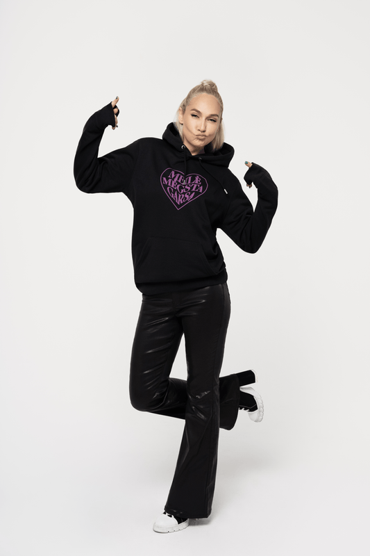 Džemperis „Meilė mėgsta garsą“ juodas su kapišonu