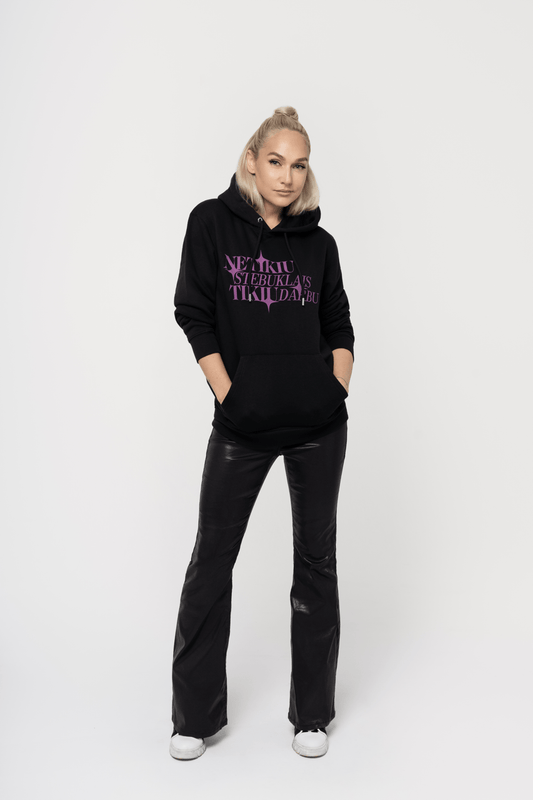 Džemperis „Netikiu stebuklais" juodas su kapišonu