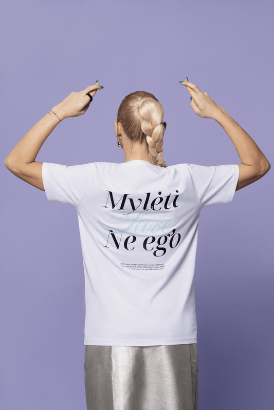 IšparduotaMarškinėliai „Aš myliu save" balti
